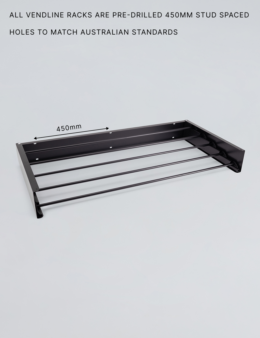 Our wall-mounted drying racks are designed with pre-drilled holes that align perfectly with the standard 450mm stud spacing in New Zealand homes, ensuring a secure and easy installation.